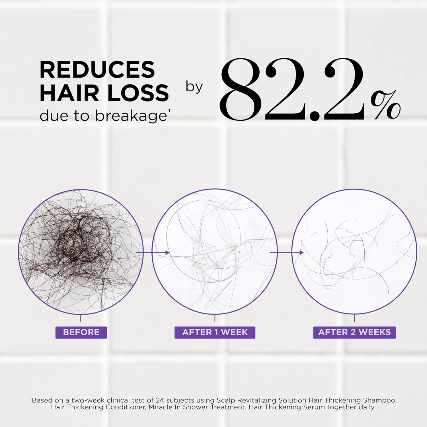 - CLINICALLY PROVEN: In 2 Weeks REDUCES HAIR LOSS due to breakage by 82.2%*, makes hair softer and enhances scalp hydration when used as a regimen.